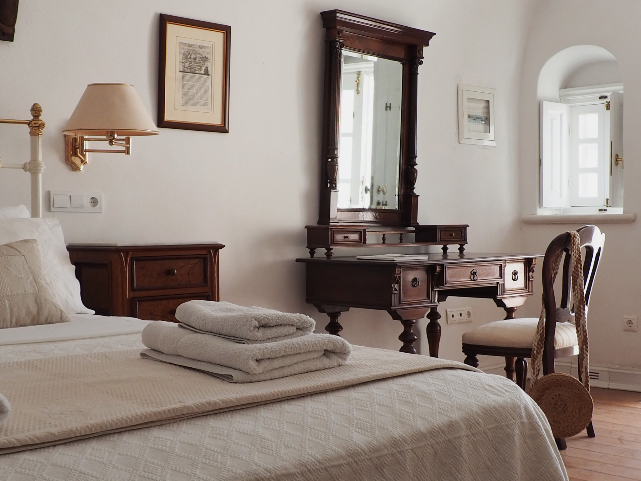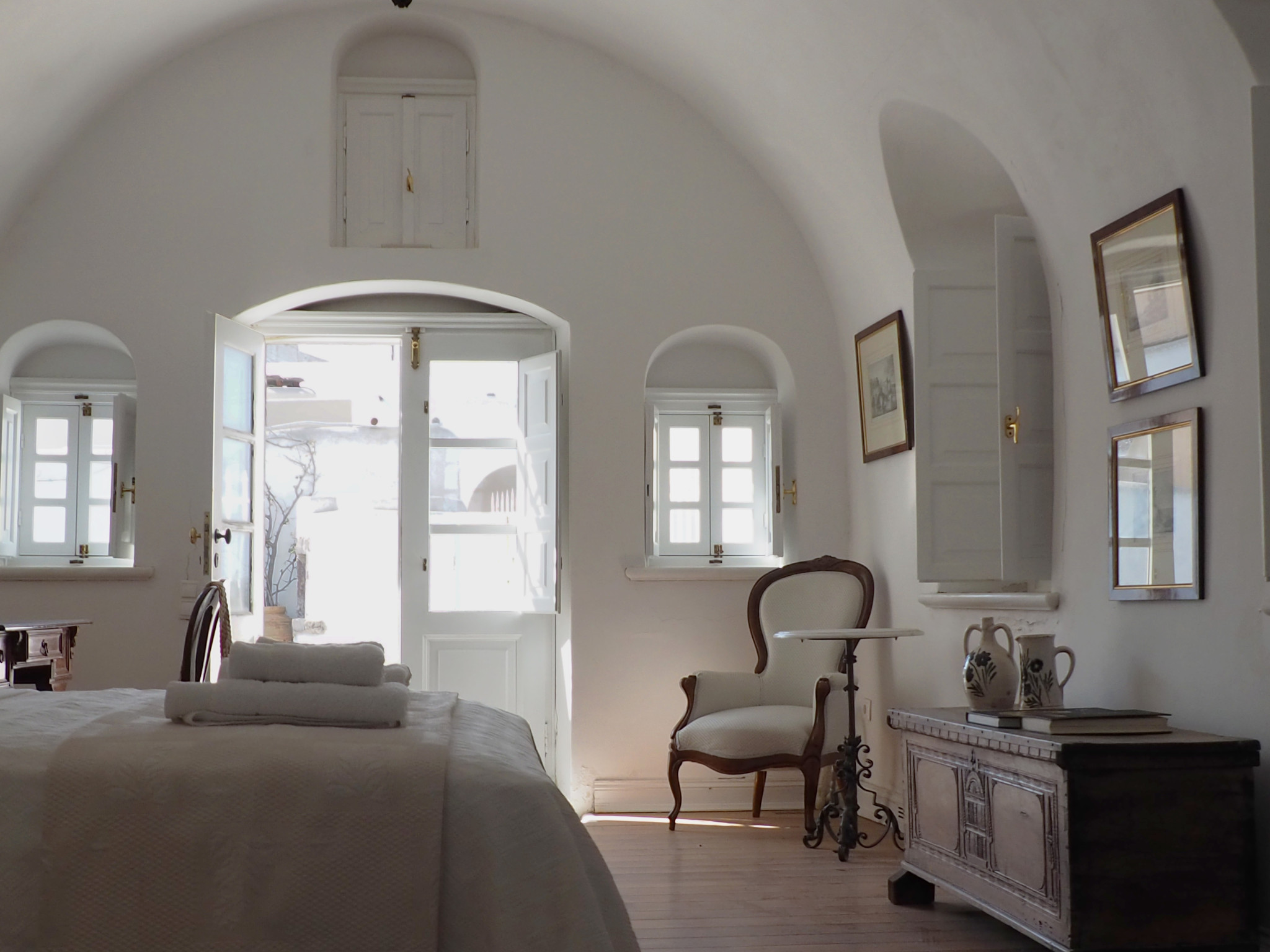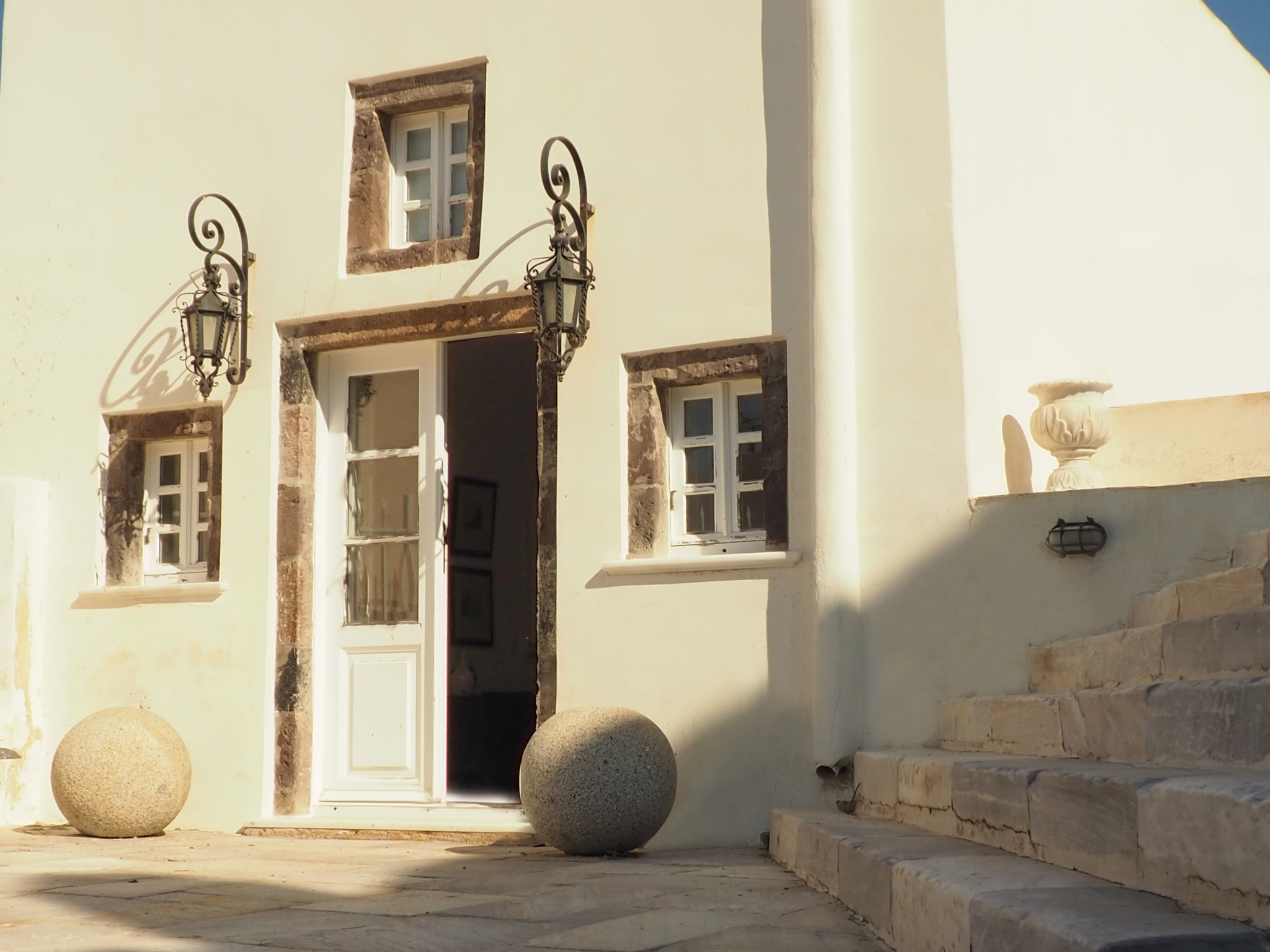 The residence consists of three units, 2 of which are located on the ground level and one on the 1st level. The total accommodation capacity is up to 6 people. There's one open plan kitchen/living room, including a WC located on ground level and a bedroom with an en-suite bathroom also on ground level. On the 1st level unit, you'll find two bedrooms with a shared bathroom. The one bedroom which is probably the best one of the sum, has the priviledge to enjoy a veranda which faces the north west. The view is truly significant, with Ios, Sikinos and Folegandros being on sight, and clear sky days makes them feel they're in touching distance.